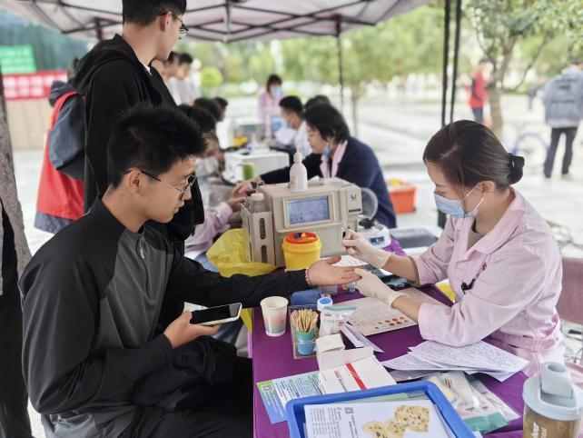 志愿者积极宣传动员,引导参加活动的师生们有序完成登记、体检、初筛等流程。