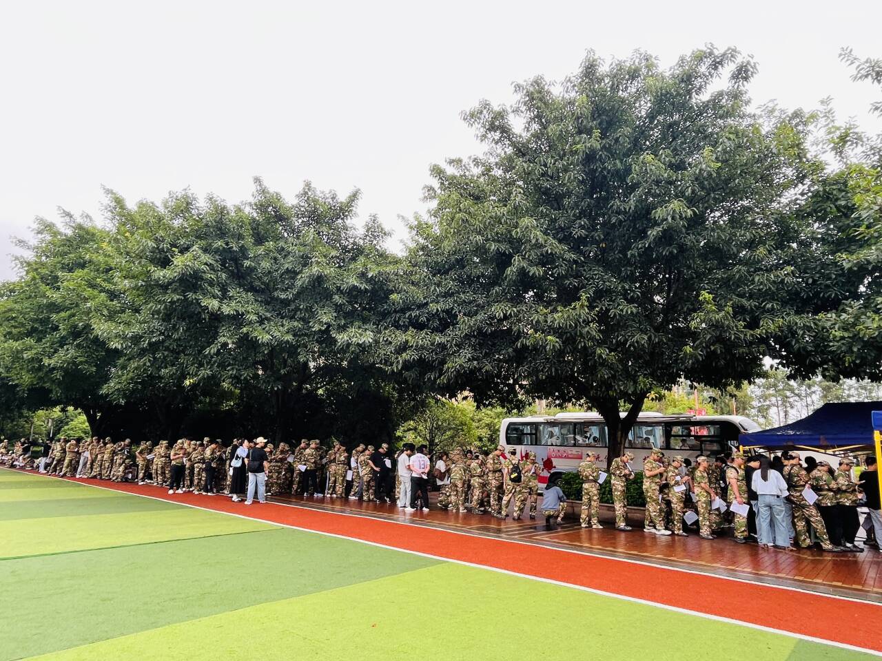 9月21日早晨,秋雨如丝,晨雾氤氲,一支特殊的“献血迷彩长龙”已然蜿蜒盘旋在四川希望汽车职业学院的校园中。细雨为这群年轻的身影织就了剔透纱衣,水珠在迷彩服上绽开了朵朵晶莹。虽然雨点让衣衫渐染深色,却浇不灭少年们赤诚的献血热忱。这群刚刚开启大学生活的新生,正以热血奉献书写新时代大学生的“青春担当”。