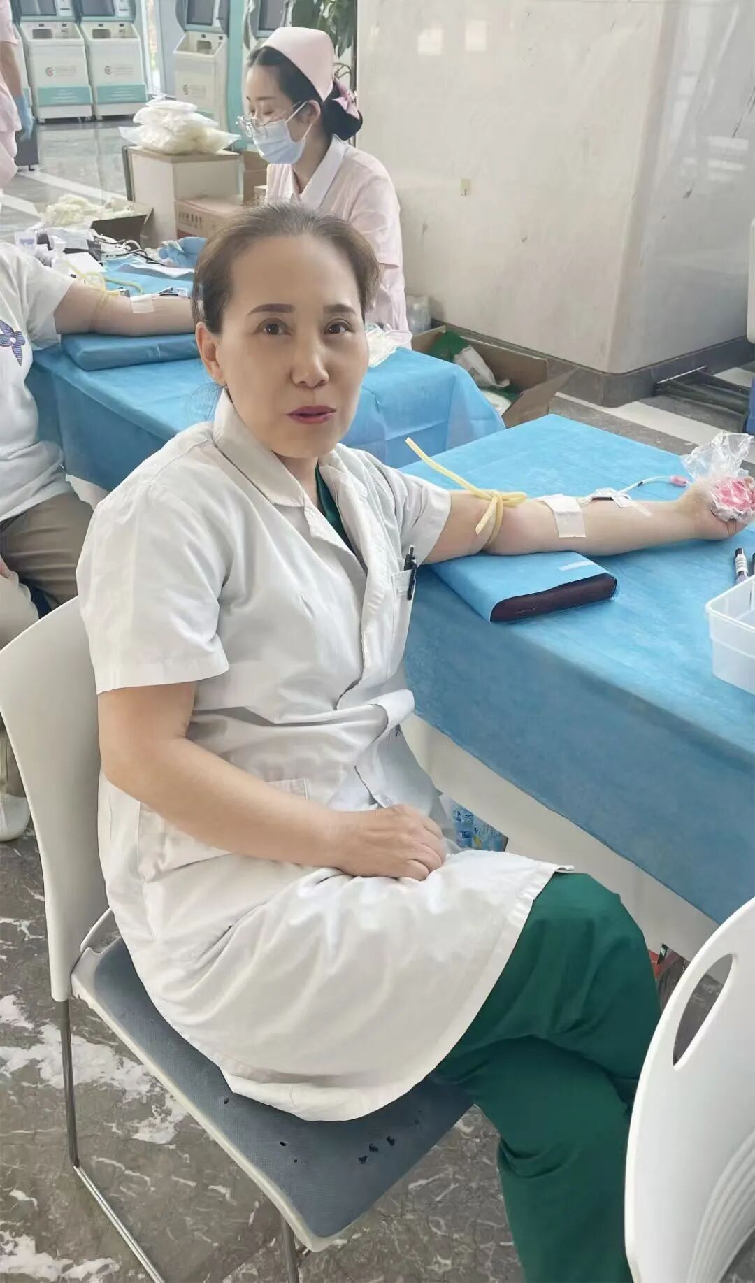 自投身输血工作以来,杨斌爱因对输血全流程的参与和生命价值的直接感知,更深刻理解输血对挽救患者生命、维持健康的核心意义。她始终将无偿献血视为另一种形式的“治病救人”。数十年间,她累计献全血23次,全血总量达4600毫升,相当于一名成年女性全身血液量的总和。即便在新冠疫情防控最严峻的封控时期,她也未曾犹豫,主动前往“万达献血屋”完成捐献。2024年6月,58岁的杨斌爱再次献出400毫升全血,她常说:要争取坚持无偿献血到60岁。用行动践行“只要身体允许,奉献不止”的信念。然而,奉献之路并非一帆风顺。2024年11月杨斌爱曾因“腰椎间盘突出”手术,经历了一场健康考验。尽管康复后身体尚未完全恢复,2025年6月她仍计划继续献血,却因血红蛋白指标不达标,最终未能成功捐血。面对遗憾,她坦然说道:“献血之路可有终点,但救人之心永无止境。”现今,杨斌爱主任虽然未能再以热血直接救助患者,却依然以专业知识和管理经验推动学科发展,培养年轻医务工作者。她常对同事说:“每一滴热血都是生命的礼物,我们能做的便是让这份爱心传递得更远。”在医疗的漫漫征途上,杨斌爱怀揣着数十年如一日的坚持与满腔赤诚,用自己的行动书写着一名医务工作者的崇高情怀。她的从医岁月,就像一部无声却震撼人心的史诗,每一页都记录着她对这份职业的热爱与担当。杨斌爱的故事,并非仅仅是个人奉献的简单缩影,它更像是一座熠熠生辉的灯塔,生动诠释着无偿献血精神的深刻内涵。她以平凡之躯,践行着英雄般的义举,于无声处彰显着人性的光辉。她的每一次献血,都是对生命的庄严承诺;每一滴热血,都承载着无尽的温暖与希望。在这个纷繁复杂的世界里,就像一束穿透阴霾的阳光,照亮了无数人前行的道路,让人们相信,即使生活充满挑战,爱与希望永远不会缺席。