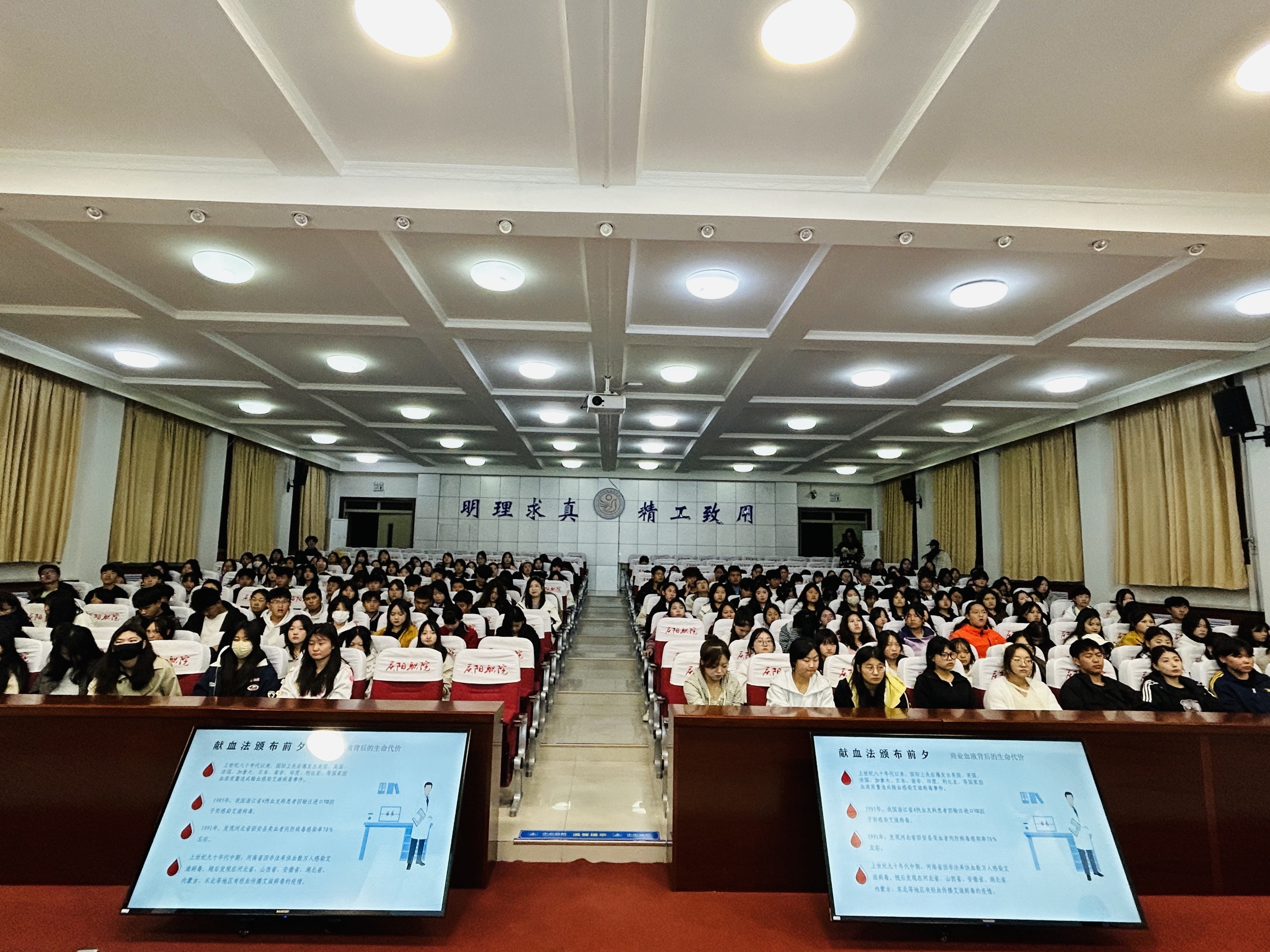 宣讲以“世界骨髓捐献者日”和《中华人民共和国献血法》设立意义为引,结合图文资料与权威数据,从血液生理知识、无偿献血发展历程,讲到血液的临床应用,层层深入,有力消除了同学们的疑虑。并特别强调:“正规献血点严格遵循《献血法》,所有采血耗材均为一人一针、绝对一次性,确保安全零风险”。针对近年来网络不实谣言导致的“献血伤元气”、“影响免疫力”等认知误区进行了一场及时的“正本清源”。宣讲团还通过视频短片聚焦造血干细胞捐献,并用通俗易懂的语言介绍中华骨髓库的建立背景、发展历程,以及其发挥的关键作用;并阐释造血干细胞的定义、人体生理功能,重点解读“HLA(人类白细胞抗原)配型”在移植中的核心地位及配型成功的低概率特性,让学生真切理解每一位捐献者都是为患者创造“万分之一奇迹”的生命守护者。同时,明确了造血干细胞志愿捐献者的基本条件、科学捐献流程,引导学生理性思考、审慎参与,以负责任的态度为血液病患者带去重生希望。
