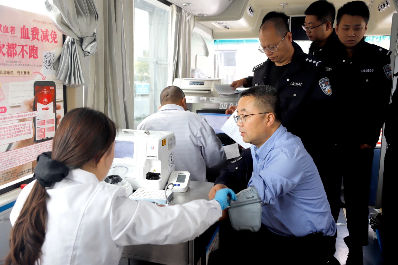 填表登记、健康征询、血压测量、血液初筛……每一个环节都彰显着公安队伍的纪律素养。警服蓝与热血红交相辉映,构成最动人的画面。据统计,本次活动累计献血量达21000毫升,一袋袋带着体温的血液,承载着公安队伍对群众的深情厚谊。