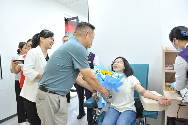 参加仪式的领导还亲切慰问了首批爱心献血者,并向他们献上鲜花,致以崇高的敬意和诚挚的感谢。