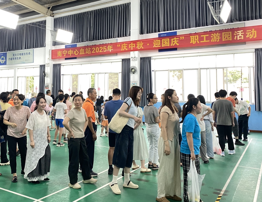 为传承悠久的中华文化,营造和谐融洽的中秋国庆节日氛围,丰富血站职工的文化生活,在中秋、国庆双节到来之际,南宁中心血站工会于9月26日下午在献血者之家球馆开展2025年“庆中秋·迎国庆”职工游园活动。来自各科室的干部职工及职工家属齐聚一堂,共赴一场融合趣味与传统文化于一体的欢乐盛宴。