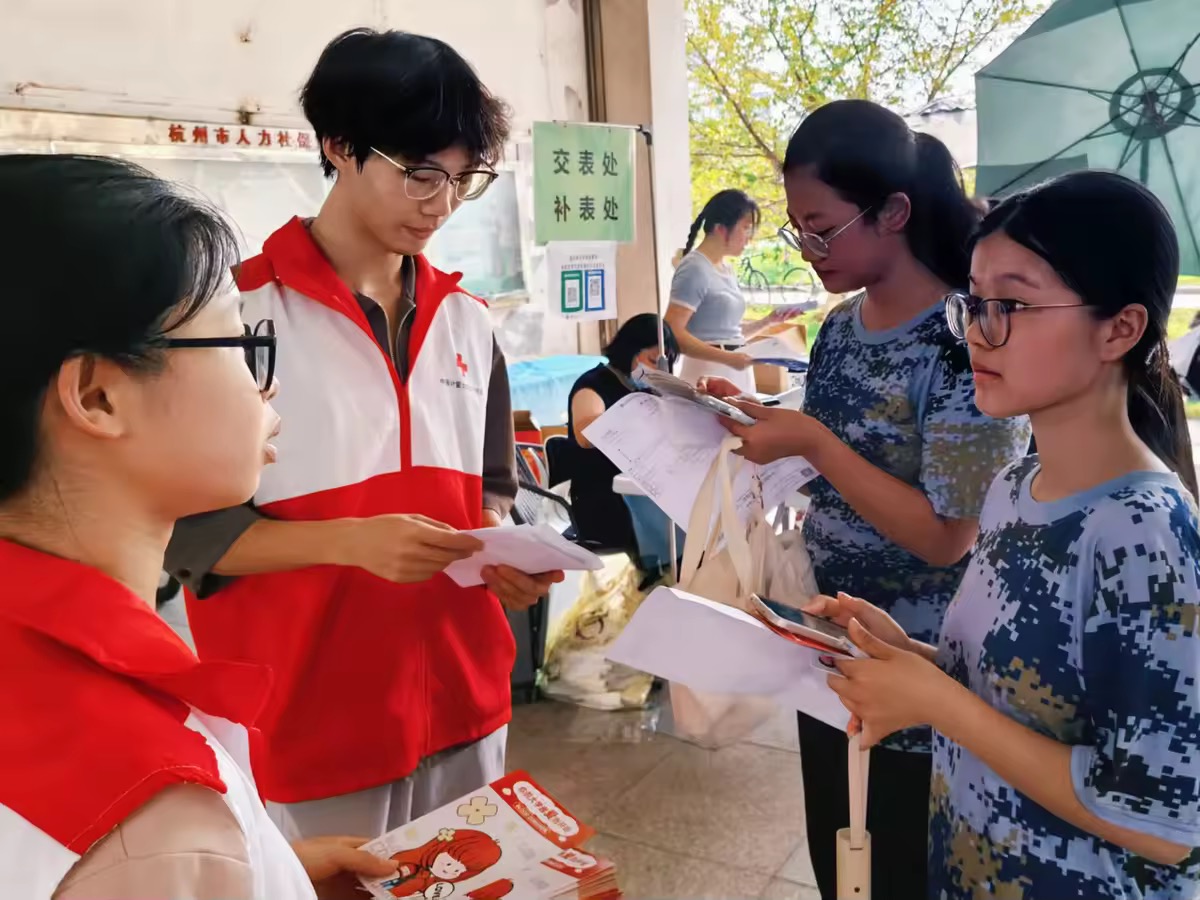 9月24日,中国计量大学下沙校区内,一场以“你的大学,因爱开始”为主题的开学季无偿献血活动火热开展。学子们怀揣热忱排起长队,用一袋袋温热的血液,为大学生活书写下充满责任与大爱的开篇,也为临床用血注入青春力量。