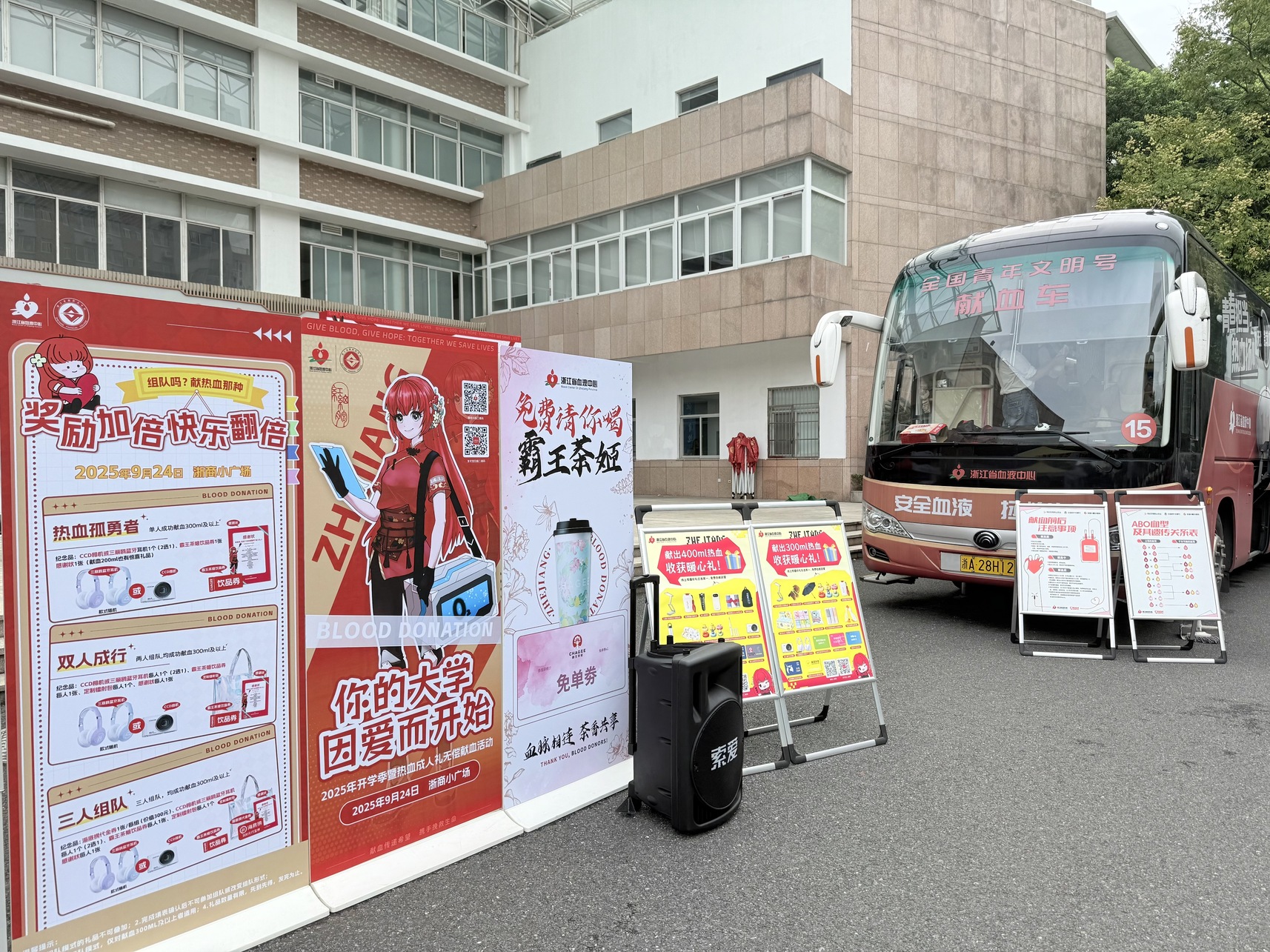 新学期解锁新角色,新青年点亮新希望。9月24日,“你的大学因爱而开始——2025年开学季暨热血成人礼无偿献血活动”暖心接力至浙江金融职业学院。浙商小广场上爱心汇聚,同学们踊跃参与,以热血为媒,为青春绘就一抹温暖的亮色。