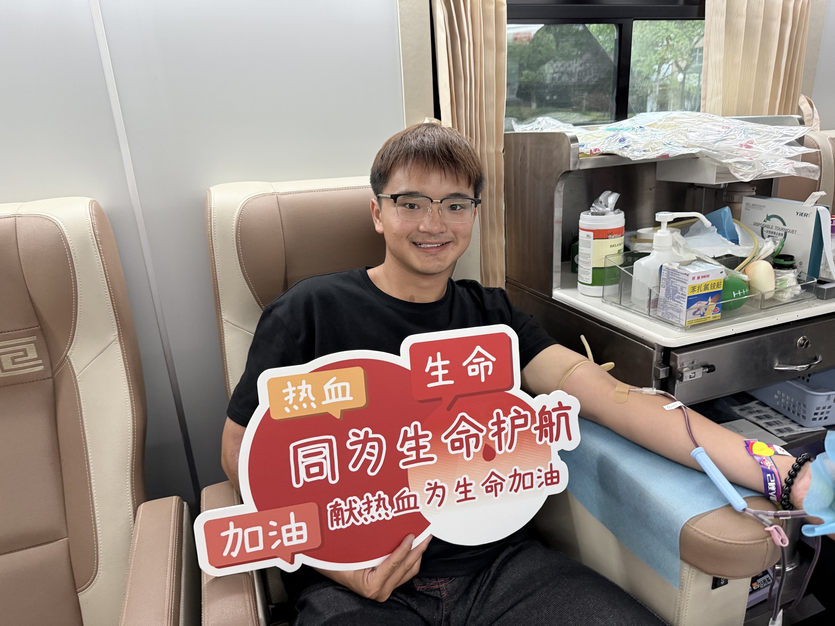 作为校青协无偿献血活动的负责人,陈强同学此次再次成功献血400毫升。大三的他已在校园内组织过十余次献血活动,个人累计献血量达1100毫升。“我每个学期都会组织献血活动,自己也坚持参与。其实我的献血经历并不顺利,前三次都因体检指标不达标未能成功,直到第四次才如愿。”陈强分享道,“每次收到血液已用于临床的短信,都让我感到特别自豪。”