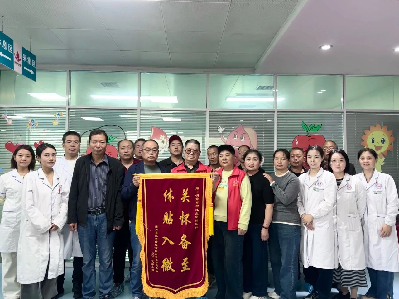 自开展单采献血服务以来,单采科始终以献血者为中心,从细节处提升服务质量。工作人员耐心解答献血者关于机采流程、健康注意事项的疑问,全程提供专业指导;在献血过程中,密切关注献血者身体状况,用温和的态度缓解其紧张情绪;献血后,还会细致叮嘱后续护理要点,让每位献血者都能感受到贴心与温暖。单采科多年来的服务宗旨和服务习惯得到了潼关成分志愿服务队员们的一致好评和认可,谢克锋队长还代表团队,特意送来了锦旗表示感谢,鲜红的锦旗不仅承载着献血者的真挚感谢,更是对单采科全体工作人员优质服务的高度肯定。