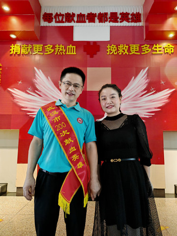 在唐树林的带动下,他的妻子杨彬也加入献血行列。2012年至今,杨彬已累计献血65次。夫妻二人经常共同前往血液中心,完成属于他们的“热血之约”。