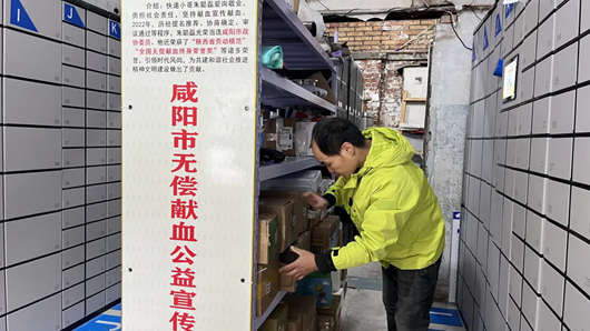 咸阳市新增一处无偿献血公益宣传点 快递小哥朱聪磊再次助力无偿献血宣传