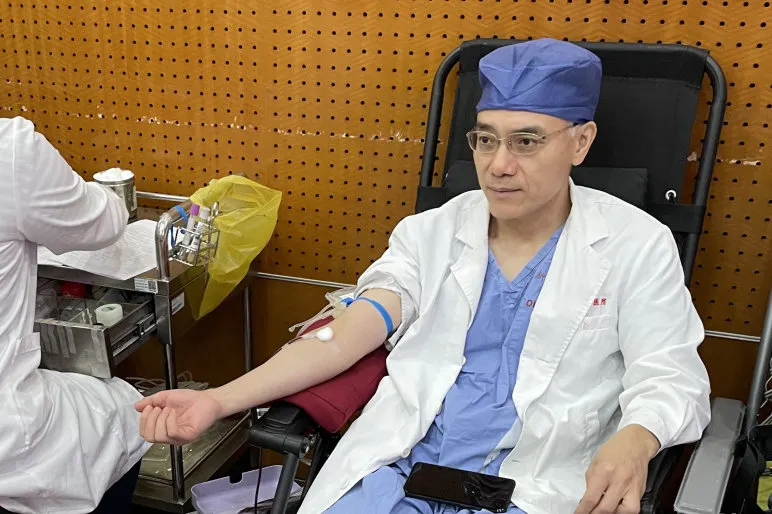 活动当日,新华医院献血现场爱心涌动。麻醉与重症医学科江来主任率先垂范,带头挽袖献血。来自临床一线、医技、行政后勤等不同岗位的医务工作者们在繁忙的工作间隙纷纷赶来,献完血后又立即返回工作岗位。我们在活动现场发现,有不少年轻医务人员闻讯而来,主动加入献血者队伍,在血站工作人员和医务部的引导下,大家依次完成登记、体检、初筛、采血等流程,一袋袋殷红温热的血液,凝聚着新华医院医务工作者对生命的尊重,传递着无私奉献、守护健康的正能量。