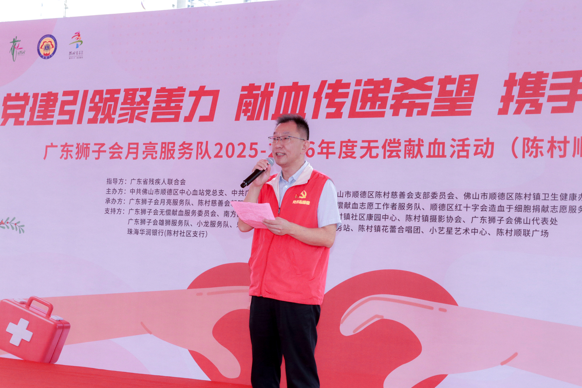 活动启幕前,广东狮子会佛山代表处与顺德区中心血站、陈村镇政府相关领导相继上台致辞。广东狮子会领导发出诚挚呼吁,希望各服务队能多多承办无偿献血活动,更号召大家积极感召亲朋好友加入爱心队伍,让这份守护生命的善意不断延续,让更多黯淡的生命因这份善举重新绽放光彩。