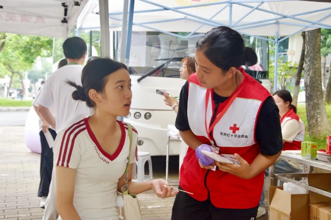 有的志愿者手持无偿献血宣传单张,主动走向路过的同学,真诚感召每一位有爱心的学子加入到献血队伍中来;有的志愿者则聚焦造血干细胞捐献知识科普,向同学们细致介绍造血干细胞捐献对挽救血液病患者生命的重要作用;还有部分志愿者在献血登记区和纪念品发放区忙碌着,有条不紊地指导前来献血的同学填写表格、核对信息,为完成献血的学子及时递上精心准备的献血纪念品,用细致周到的服务让每一位献血者都感受到浓浓的关怀。