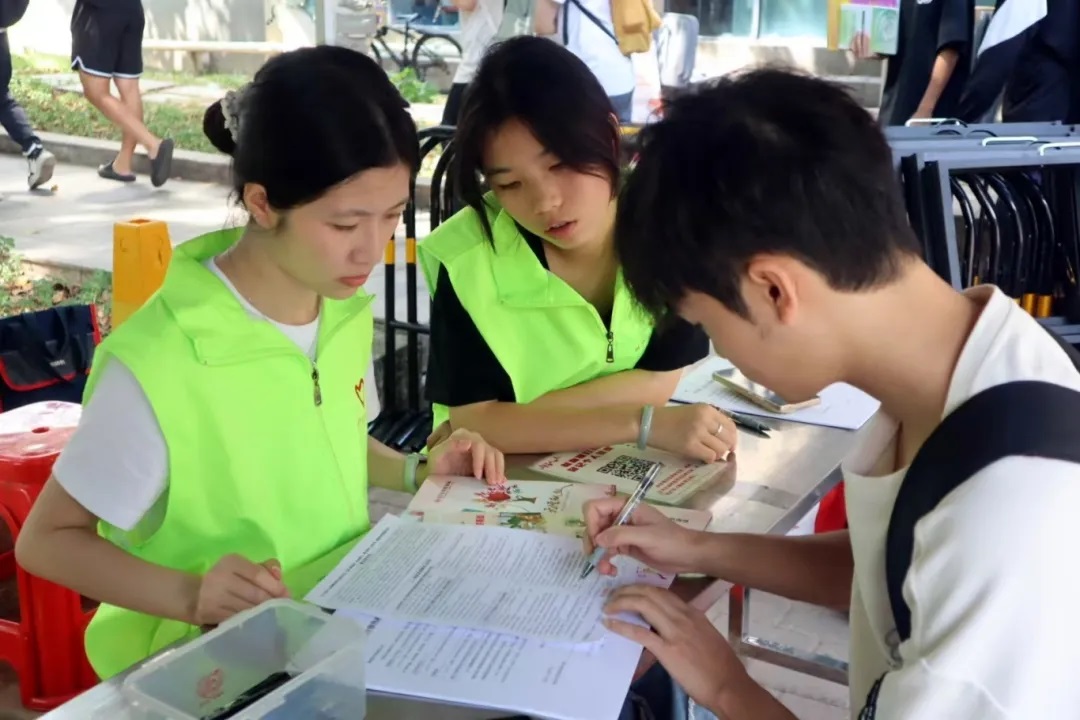 活动现场,处处洋溢着青春的活力与奉献的温暖。身着志愿服装的学生志愿者们分工明确、热情满满,成为了校园里一道靓丽的“爱心风景线”。