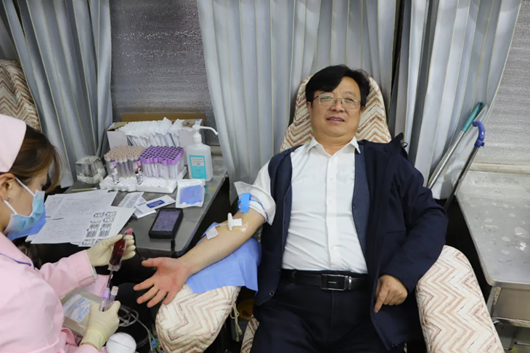陈伟是A型血,活动现场再次带头献血400毫升。他既是献血者,又是组织者和宣传者,发挥示范作用,鼓舞更多干部和群众加入到了无偿献血爱心队伍。