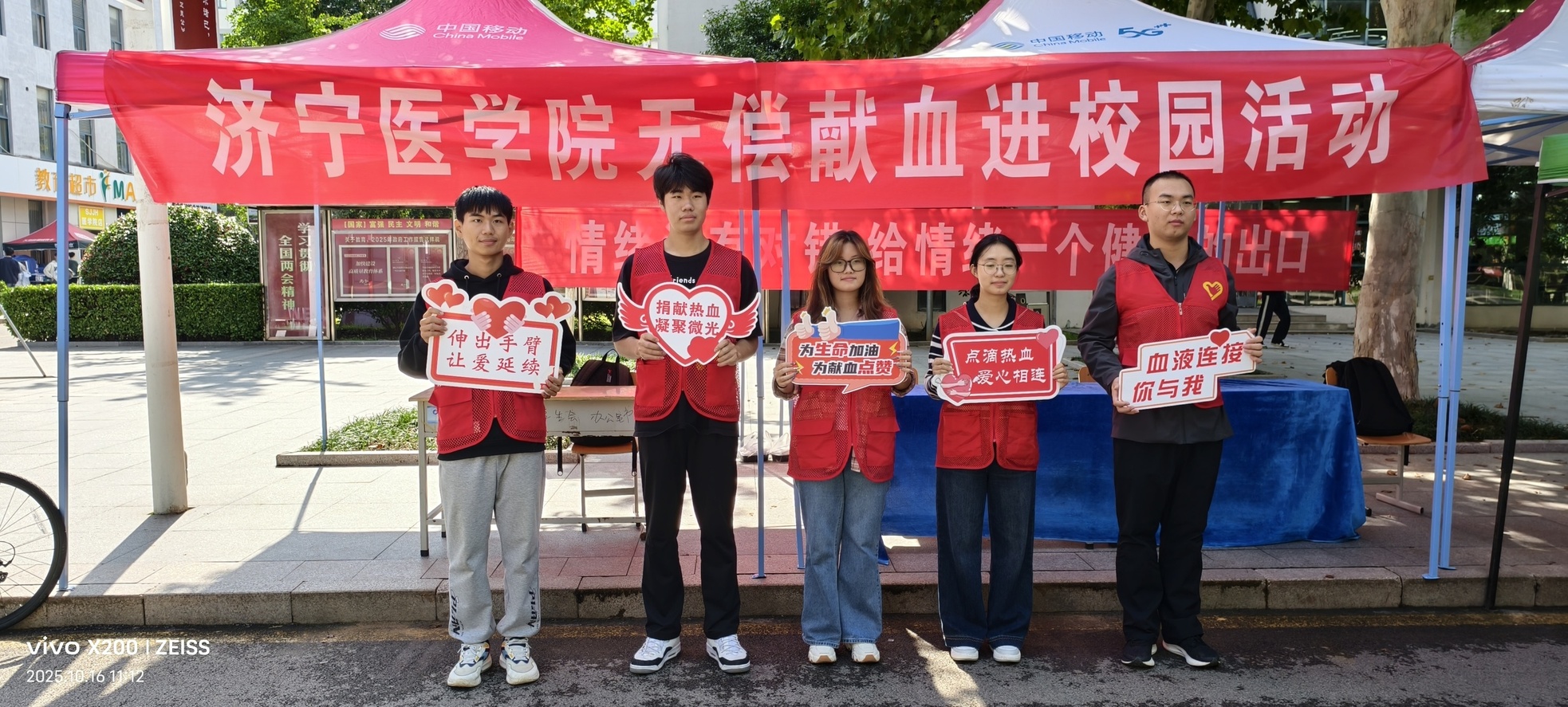 济宁医学院高度重视无偿献血工作,以无偿献血作为关爱生命、感恩奉献的教学实践课,学生志愿者在校园发放宣传单和张贴海报,各二级学院发送献血注意事项和预报名通知,为无偿献血营造良好的校园氛围。献血活动现场气氛热烈,同学们积极热情参与,献血者认真填表、体检、初筛、采血、观察休息,所有流程在医护人员的指导下有序进行。捐献可以再生的血液,挽救不可重来的生命。无偿献血是一项社会公益事业,是保障人民生命安全和身体健康的举措。此次活动充分彰显了济医师生积极参与公益事业的热情,诠释了新时代大学生强烈的社会责任感和无私奉献的高尚情操。