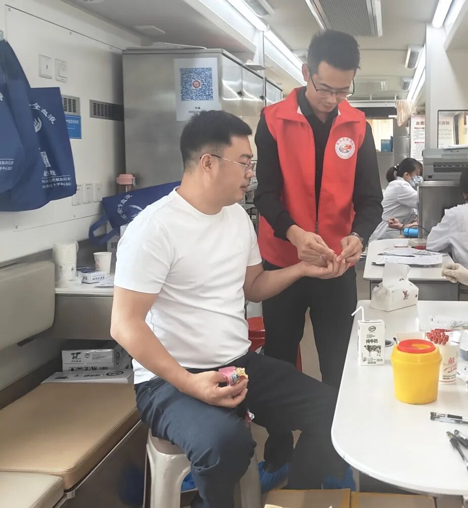 在镇长的带动下,现场气氛愈发热烈。村干部小傅也拿着会议记录本匆匆赶到,额角还带着忙碌的汗珠。“刚散会就赶过来了,生怕错过时间。”小傅一边熟练地填写献血表格,一边向工作人员说明,这是他第二次参与无偿献血,“上次献血后身体挺好,这次听说镇上组织活动,必须再来尽份力,咱村干部更得带头做实事。”多家企业也积极组织职工参与,政企干群同心接力,用点滴热血为临床用血需求注入本土力量,大家用手臂上的针孔,书写着对生命的敬畏与对乡邻的关怀。