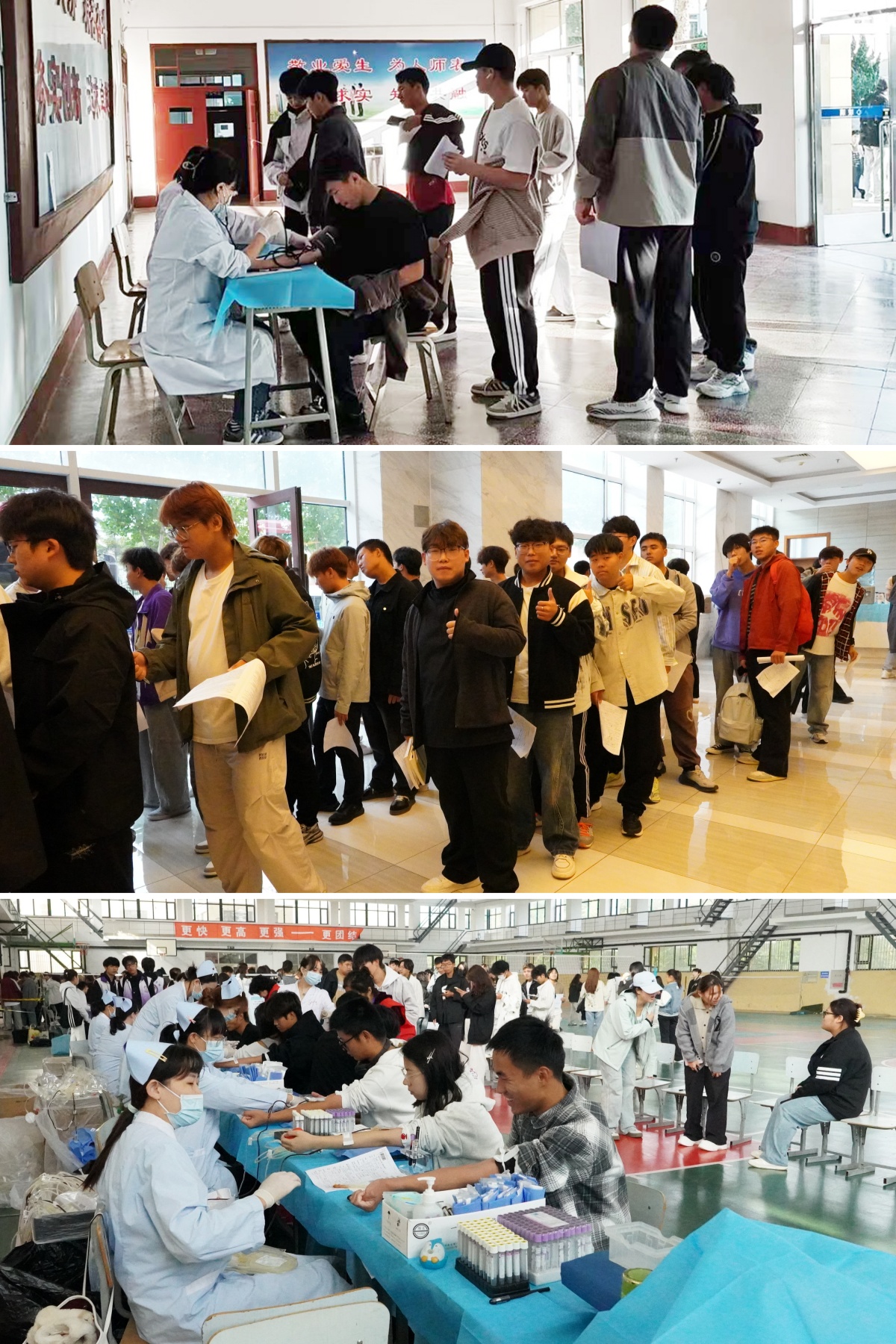 大连职业技术学院后勤处处长韩冰、卫生所负责人孔韵如、大连市血液中心副主任范亚欣与献血同学及志愿者合影。校领导、血液中心领导到献血活动现场对同学们的爱心行为给予高度赞扬,心中有阳光,脚下有力量。此次献血不仅是大技院学子个人成长历程中一座熠熠生辉的里程碑更是他们投入社会、担当奉献的美好开篇。