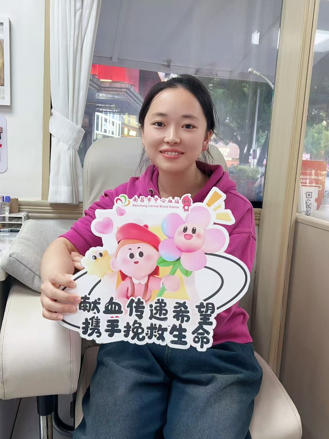 饶泽曦,他是我站工作人员的弟弟,现就读于南昌大学临床专业,是一名大二学生,这是他第三次献血,累计献血1000毫升。他说:“献血不仅是为了帮助他人,更是对生命的一种尊重与珍惜。”从大一开始,他受姐姐的影响,便积极参与无偿献血活动,并深深体会到这项公益事业的重要性。每次献血前,他都会做好充分的准备。他认为,作为一名医学生,献血是他责任的一部分,也是在实践自己的职业理想。他希望通过自己的行动,能够鼓励更多的年轻人参与到无偿献血的行列中,传递爱与温暖。”