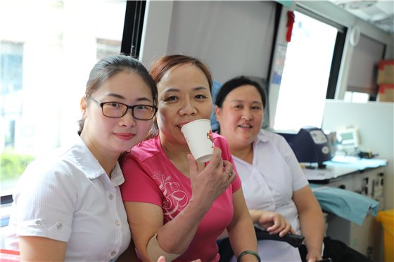 段慧玲是当天第一位献血者,虽然也是第一次献血,但神态十分放松,她笑着说:“我这也是故作镇定,一个人去献血就会有些害怕,但是大家一起参加就还比较安心。”“没事,今天回去炖一锅鸡汤,再炒点好菜补一下就行了。”一旁的何雪利表示要让大家尝尝她的手艺,她们还一起鼓励车下观望的同事们:“别怕,献了血其实也没什么反应。”