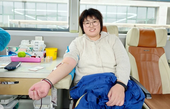 栗秀霞在朋友的陪伴下来到献血车,完成了她的第三次献血。“虽说有一点刺痛,但比起能挽救别人生命来说,这点疼不算什么。”栗秀霞说。