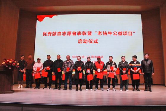 蚌埠市中心血站参加涂山志愿者协会优秀献血志愿者表彰暨“老牯牛公益项目”启动仪式