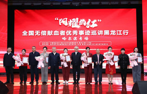 为了进一步弘扬社会正能量,颂扬无偿献血志愿者无私奉献的高尚情怀,展示采供血机构人员风采,中国输血协会与黑龙江省血液中心于2025年10月23日-10月26日联合主办“闪耀的红——无偿献血者优秀事迹巡讲黑龙江行”活动。10月26日,这场凝聚爱心与感动的公益盛会,在黑龙江中医药大学礼堂迎来了隆重的闭幕式暨哈尔滨站报告会,为为期四天的巡讲之旅画上了圆满的句号。