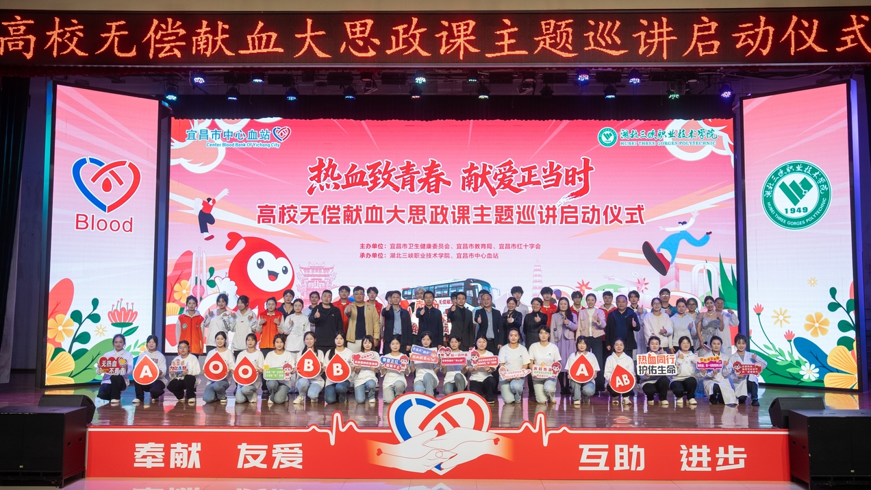 为深入贯彻落实省卫生健康委、省教育厅、省红十字会联合下发的《关于进一步加强高校无偿献血工作的通知》文件精神,提升高校“大思政课”育人内涵及成效,10月30日,“热血致青春,献爱正当时”无偿献血大思政课主题巡讲启动仪式在湖北三峡职业技术学院举行。活动由宜昌市卫健委、市教育局、市红十字会主办,市中心血站与湖北三峡职业技术学院承办。