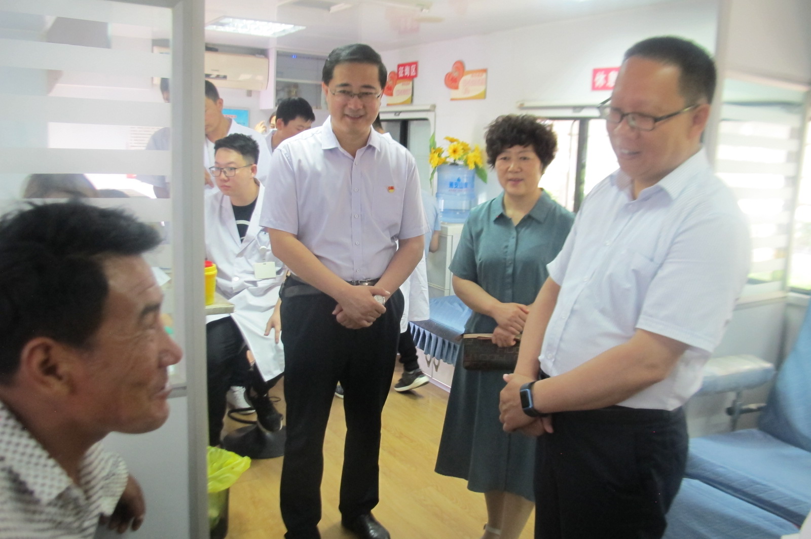 8月5日上午,张掖市政府副市长李建兴到市中心血站献血屋检查工作,市卫健委党组书记、主任魏士博及党组成员、副主任姜明桂陪同。李建兴副市长在市中心血站设置的“健康中国行,从无偿献血做起”宣传点与宣传工作人员进行了亲切交谈,握手问好,并向他们详细询问了解了无偿献血常识、献血流程、血液采集、无偿献血宣传动员、招募采集以及临床供应等情况。得知张掖市连续多年来都保持了临床用血的及时、安全,未发生过供血不足或不及时的情况后,李建兴副市长显得非常高心。