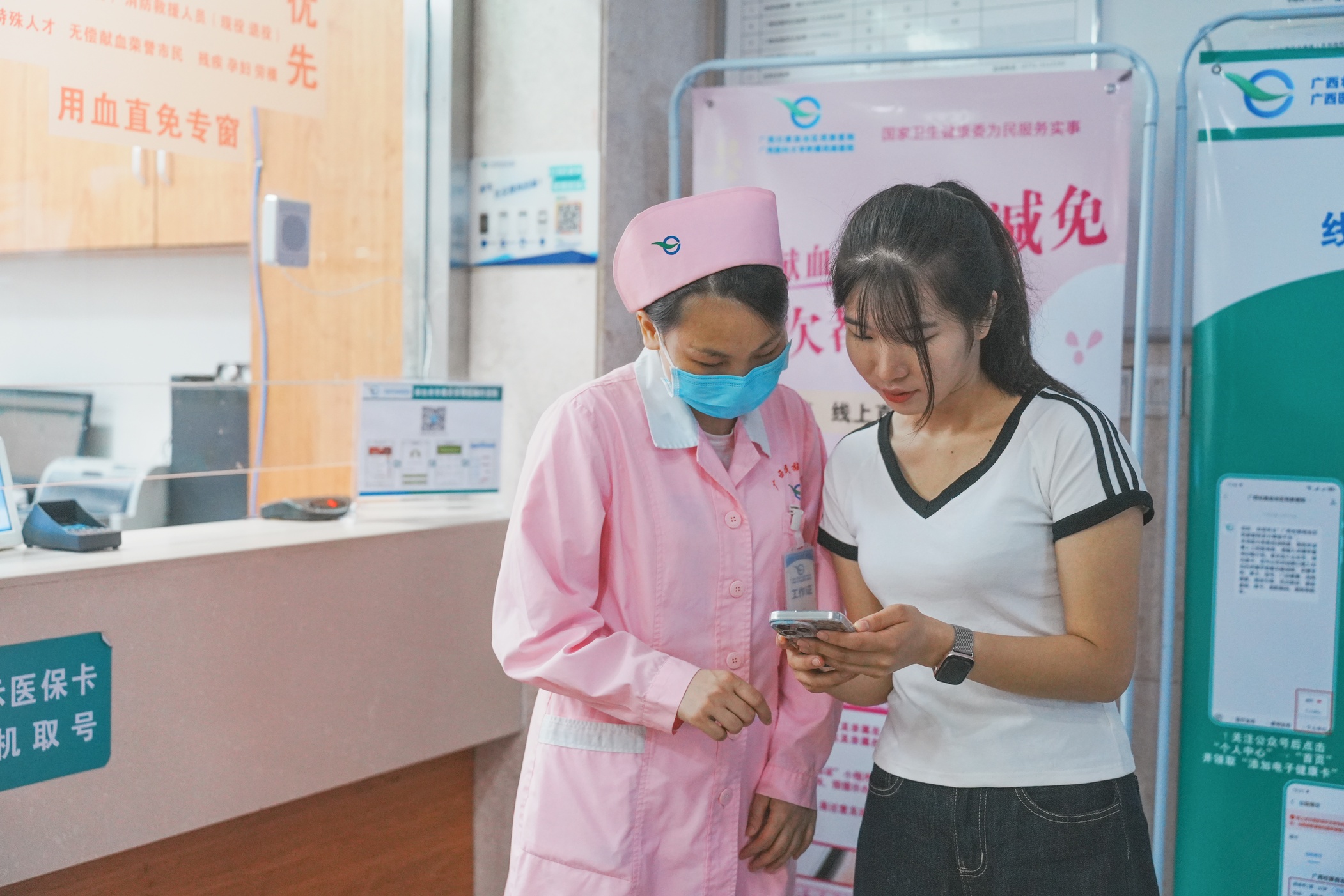 广西民族医院工作人员指导献血者在“广西健康信息惠民平台”完成亲属关系绑定