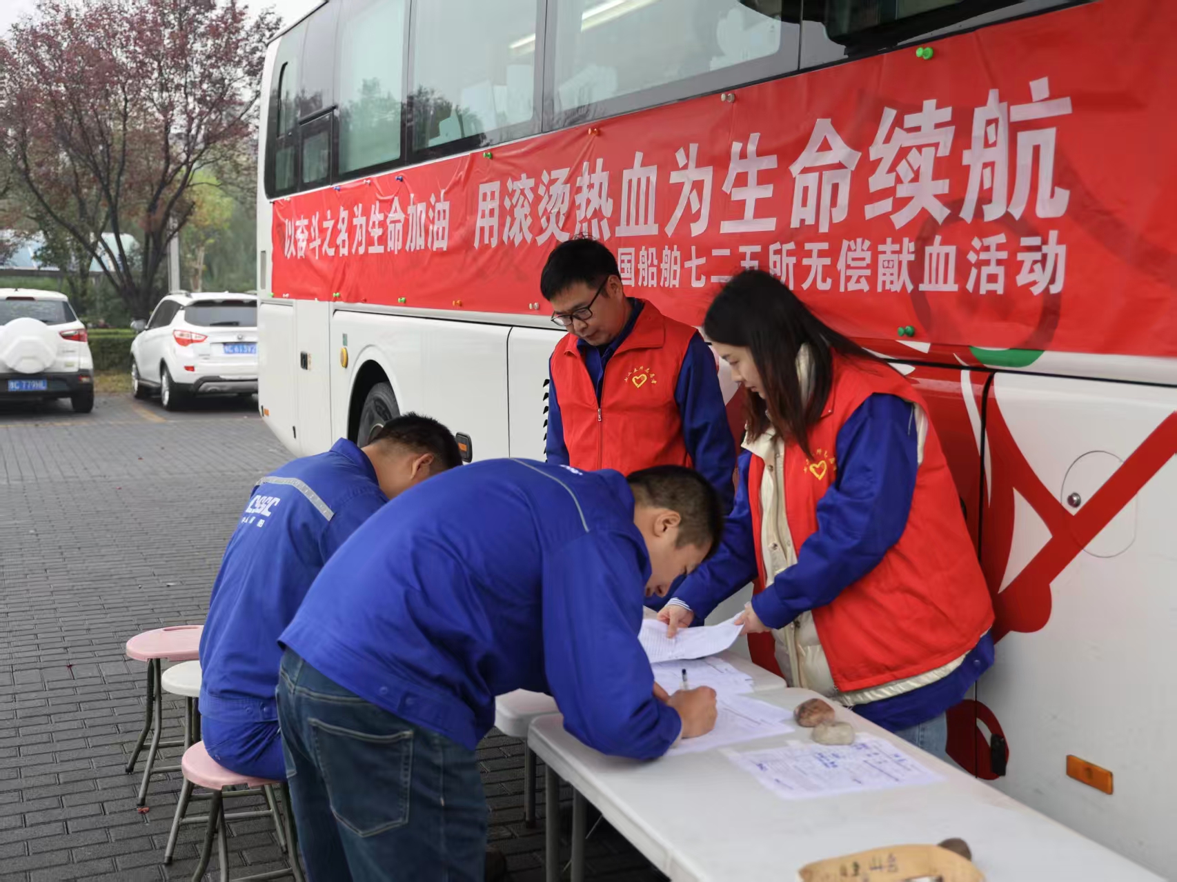 月7日一大早儿,立冬的清晨阴雨绵绵,空气中透着冬的寒意,在中船重工七二五研究所各园区,无偿献血车的周围,却人头攒动,热闹非凡。