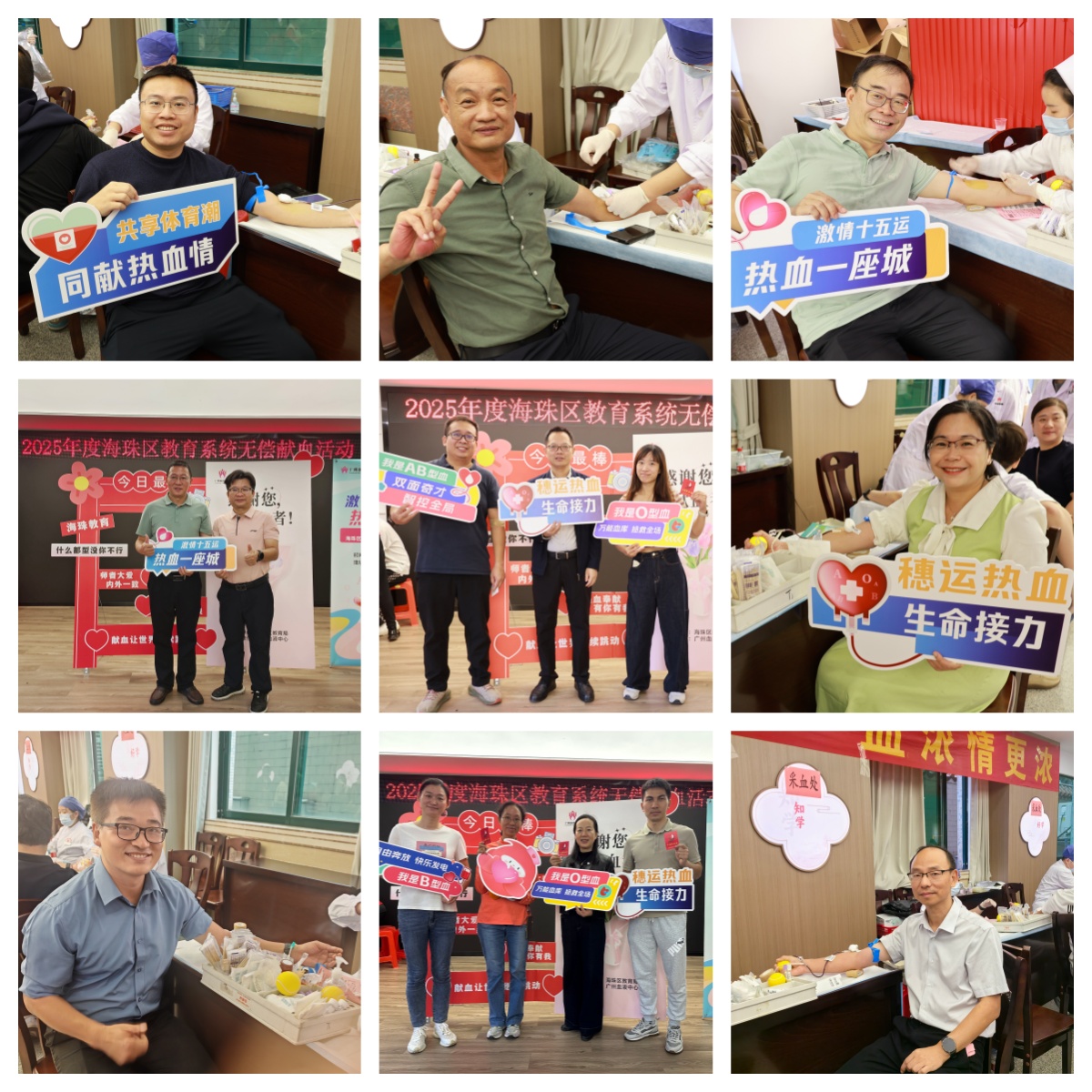 11月7日,海珠区教育局联合海幢街道办事处开展无偿献血活动,当天累计献血量达 71000mL。献血现场暖流涌动,许多年轻教师虽是初次参与,在领队和同事的鼓励下,也毫不犹豫地挽起袖子。老师们用这种 “以身传道” 的方式,将爱心与奉献的种子播撒在学生心中。海珠区教育系统的教师们以实际行动彰显了社会责任担当,展现了新时代教育工作者的风采,为 “激情全运会” 增添了特殊的意义。
