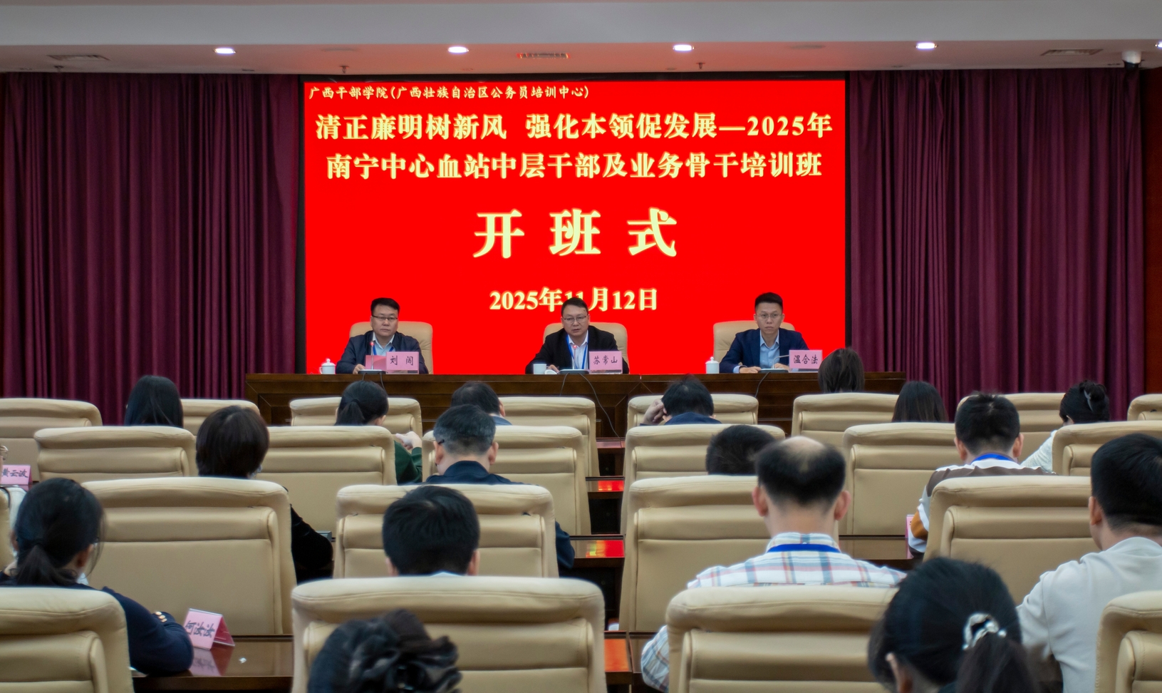 为全面提升中层干部管理能力与业务骨干专业素养,优化人才梯队建设,2025年11月12-14日,南宁中心血站在广西干部学院开展以“清正廉明树新风 强化本领促发展”为主题的中层干部及业务骨干培训班。全站中层干部、“3+N1520”新苗(优苗)人才及献血服务科室组长等60余人参加培训。