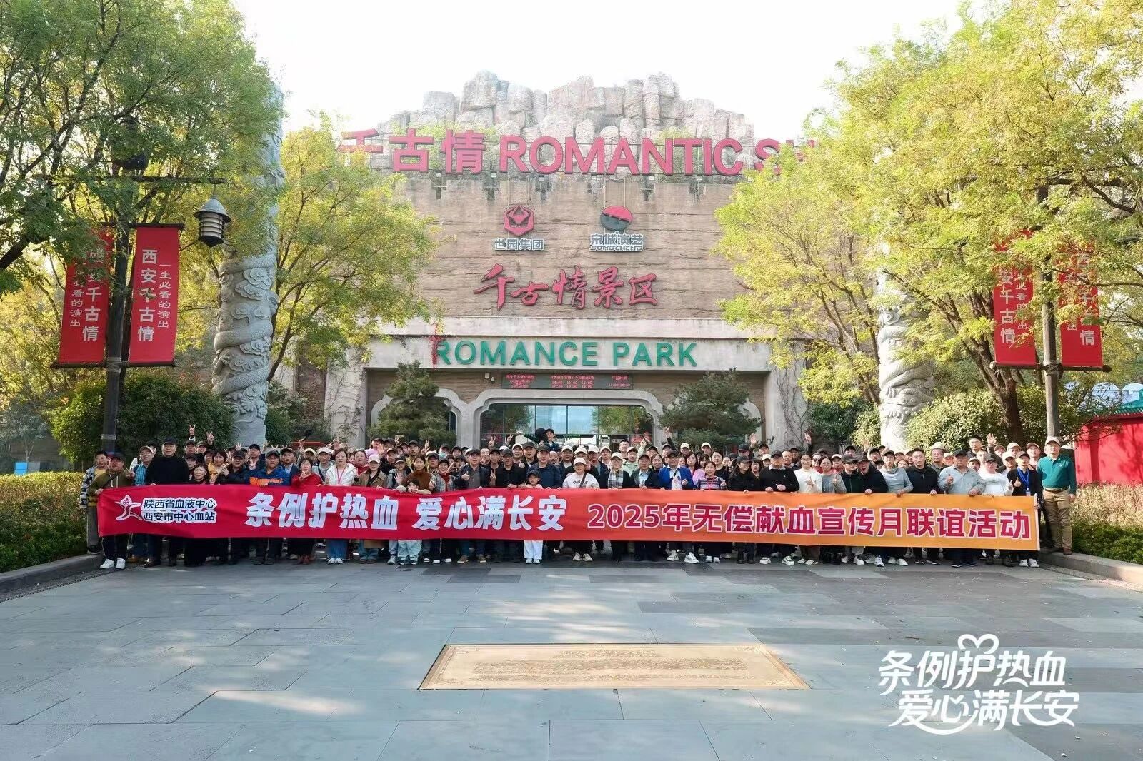 仪式结束后,献血者们分批探访汉阳陵,于史迹间触摸文脉,恰逢银杏铺金,林间定格欢颜;随后赴西安千古情,沉浸式观演感受文化魅力,伴着暖意返程,这场感恩联谊顺利收尾。