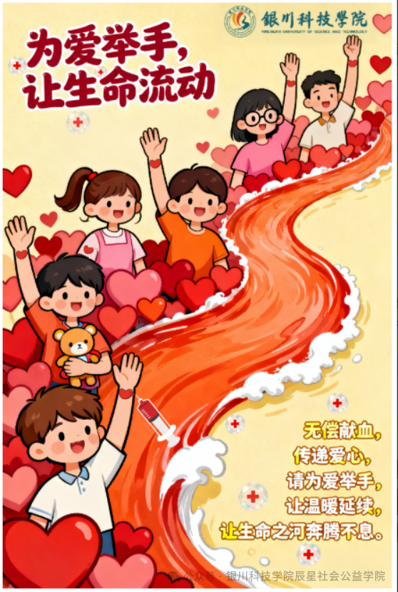 由银川科技学院社会公益学院主办,银川科技学院红十字会协办,宁夏回族自治区血液中心给予大力支持的“热血青春,为爱续航”银川科技学院高校无偿献血公益海报设计大赛,在全体银科学子的热忱参与中圆满落幕!