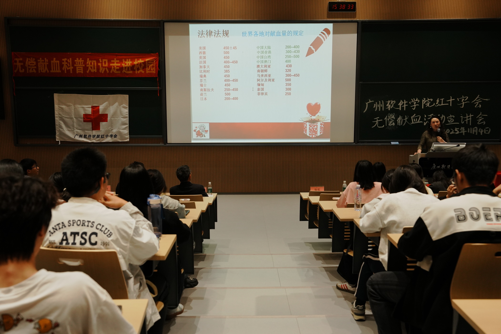 11月4日,江门市中心血站无偿献血科普宣讲团走进广州软件学院(江门校区),为朝气蓬勃的学子们带来一堂生动的生命教育课。