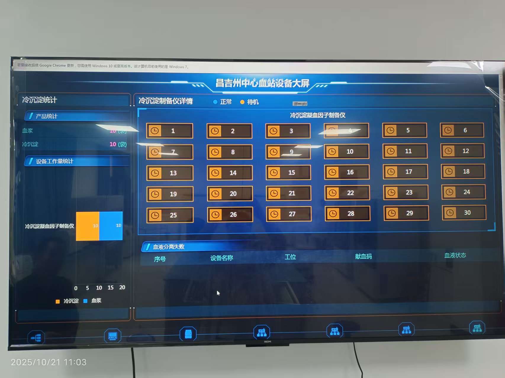 近年来,昌吉州中心血站利用中央投入西部地区血站建设项目,购置更换了血液制备设备,同时开展血液白细胞过滤、病毒灭活等技术,为实现血液成分制备标准化、信息化创造了有利的条件。在前期新设备和新技术相继投入使用的基础上,血站成分科于近日完成“设备一体化”智能管理系统的最后一次调试并投入运行。