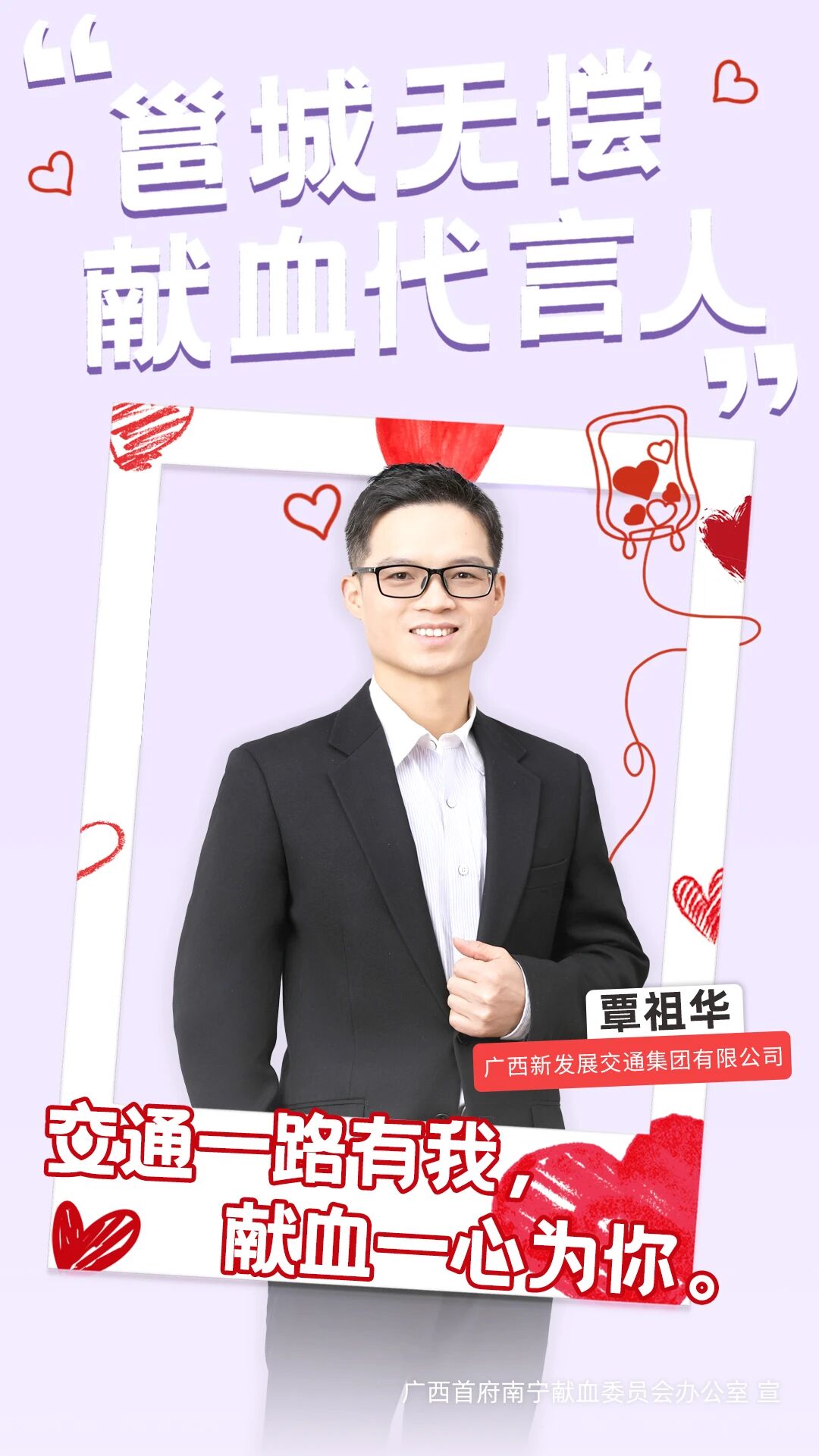 覃祖华热爱运动,健康阳光的形象是“献血无损健康”的生动证明。作为企业党建与群团工作者,覃祖华深知:一人之力有限,众人之力无穷。他将跑步的韧劲转化为公益的热忱,凭借出色的组织能力和天然的感召力,成功将职工凝聚成一支热血队伍。