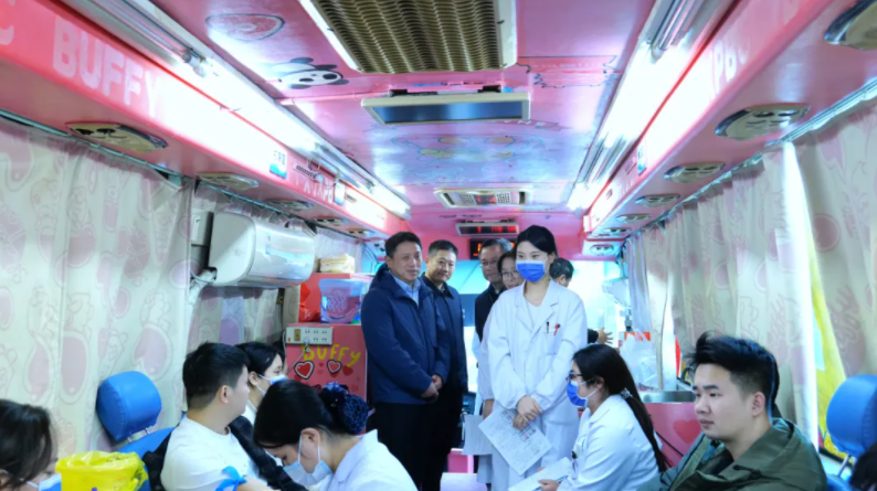 为弘扬“人道、博爱、奉献”的红十字精神,推动“三献”事业深入发展,致敬捐献者以无私大爱挽救生命的崇高行为。11月19日,南昌大学第一附属医院在象湖院区开展了2025年第四次无偿献血暨造血干细胞捐献、遗体和人体器官捐献志愿登记活动。南大一附院党委书记廖岚,党委委员、副院长李建明,副院长乐爱平,以及江西省血液中心党委副书记、主任范为民,党委委员、副主任吴芬慰问参与献血的爱心人士与坚守岗位的工作人员。廖岚书记,乐爱平副院长带头捋袖参与献血。