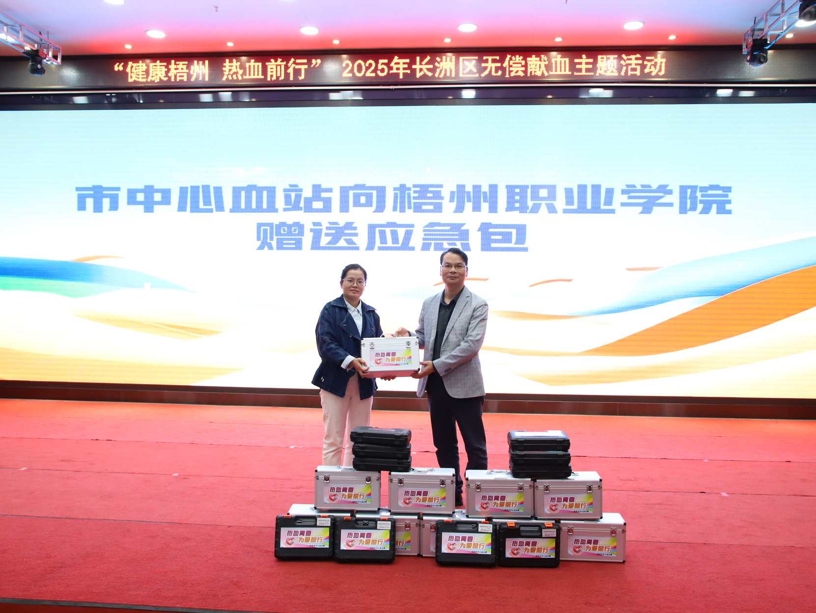 梧州市中心血站向梧州职业学院赠送应急救护包,以实际行动支持校园应急能力建设,为师生安全增添保障。