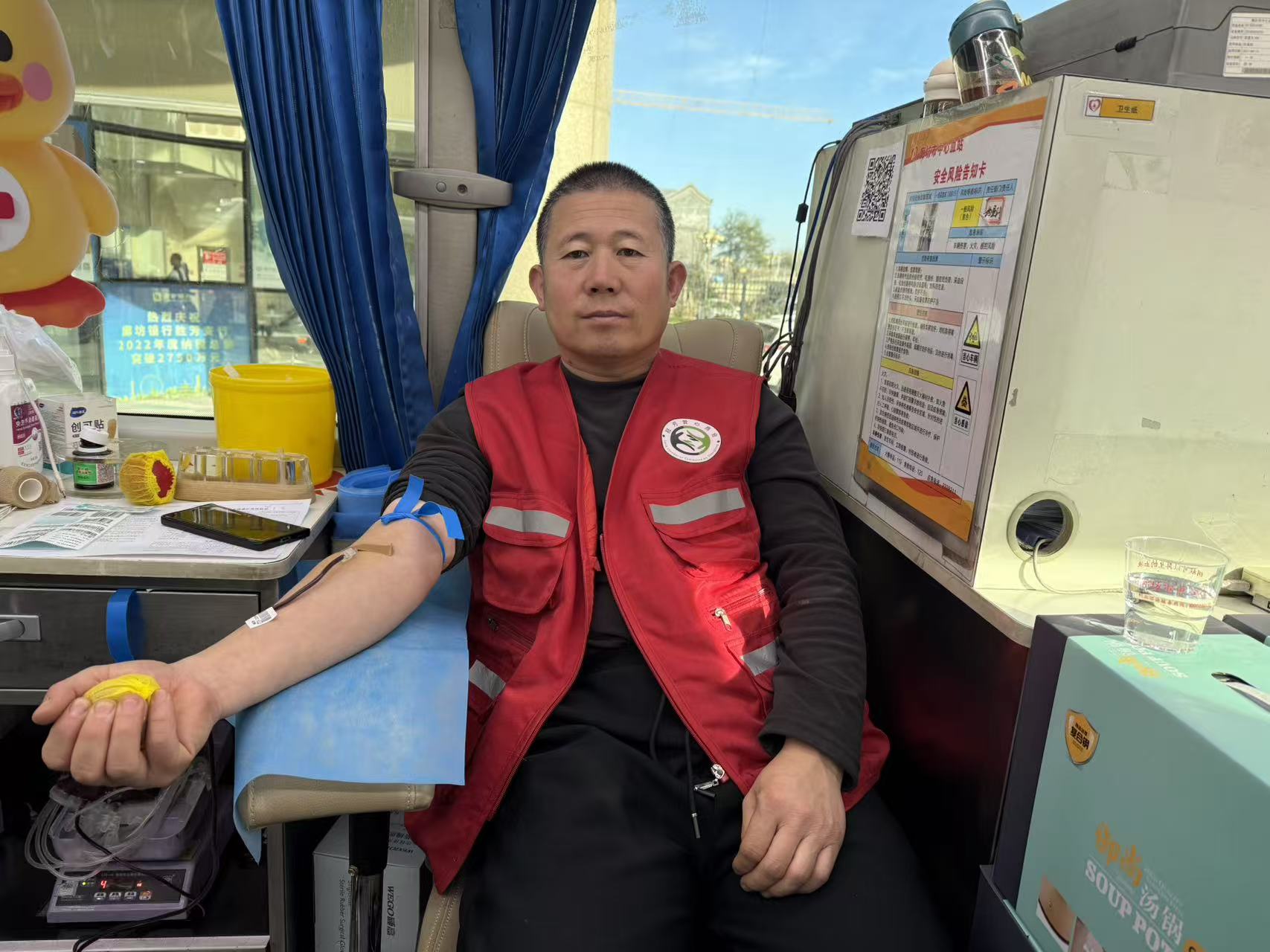 在涌动的人潮中,胜芳爱心商会会长张焕武的身影格外醒目。作为献血场上的“老熟人”,他用16年的坚守书写着公益初心,累计献血28次,献血量11200毫升,这一串串数字背后,是一位社会组织带头人对生命的敬畏与担当。活动当天,他早早来到现场,熟练地填写表格、配合检测,用实际行动为商会成员树立榜样。看到有第一次献血的成员面露紧张,他主动上前拍肩鼓励:“别担心,献血是件光荣又有意义的事,我第一次献血时也紧张,现在早就成了习惯!”他分享着自己多年的献血经历,科普着无偿献血的益处,朴实的话语像一股暖流,让现场的紧张氛围渐渐消散。