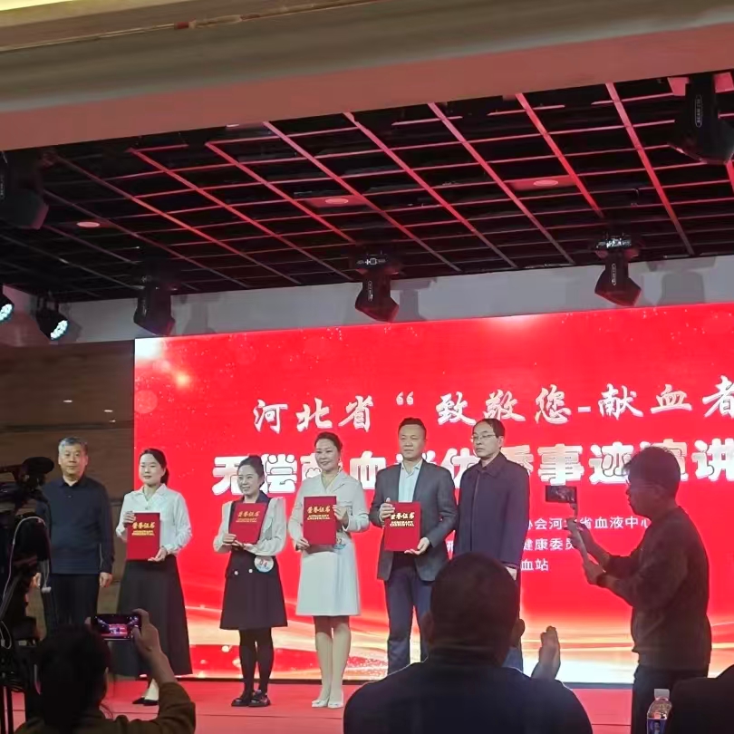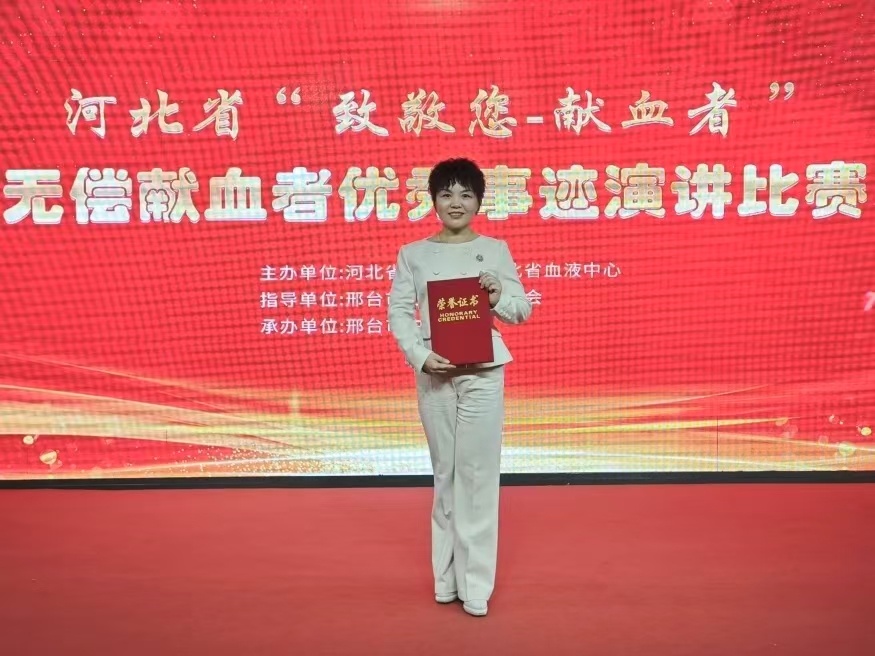 由河北省血液中心、河北省输血协会联合主办的“致敬您-献血者”无偿献血者优秀事迹演讲比赛,于11月26日在邢台市隆重举行,来自全省12家血站的22名选手同台竞技,用鲜活故事传递无偿献血的大爱力量。最终,保定市中心血站代表张晓玲和献血者代表李长城凭借出色表现脱颖而出,分别荣获一等奖和三等奖。