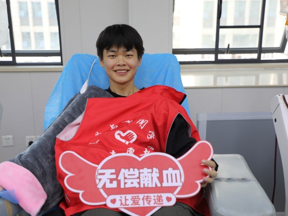文新院23级汉师一班团支书朱鹏煊在活动结束后走进献血大厅捐献机采成分血,自大一入学起,他便主动了解献血知识,在确认自己符合健康标准后,毅然踏上无偿献血之路,至今已献血21次,其中多次捐献机采成分血,累计献血量8200ml。他坚定表示:“献血不仅是个人行为,更是社会责任的体现。每一次捐献都可能为他人带来生的希望,这种使命感让我坚持至今。作为入党积极分子和学生干部,更应该以身作则,用热血践行责任!每一次挽袖都是对生命的承诺,希望能带动更多人参与。”