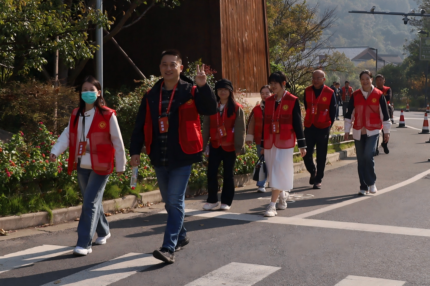 随后,徒步宣传活动正式启动。由职工和志愿者组成的公益队伍向徒步终点稳步前行。沿途,参与者手持宣传标牌、身着公益红马甲,向过往市民传递无偿献血理念,整个队伍宛如一道流动的“公益风景线”。