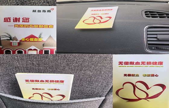 没想到出租车师傅爽快的答应了。就这样随着一句句朴实的“行呢,行呢”,"放着吧""当然可以",这些温暖人心的话语。一本本的无偿献血宣传册被司机师傅接进出租车车厢,等待着乘客们的翻阅。