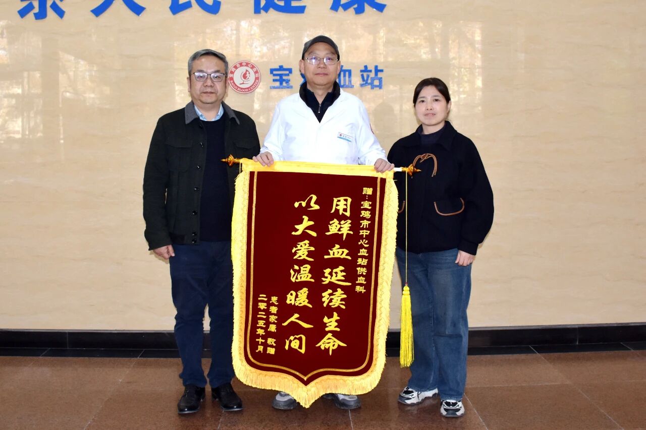 今天,我们收到了一份特别的礼物——一面红底金字的锦旗。“用鲜血延续生命,以大爱温暖人间”,简单的字句,却承载着真挚的情感。