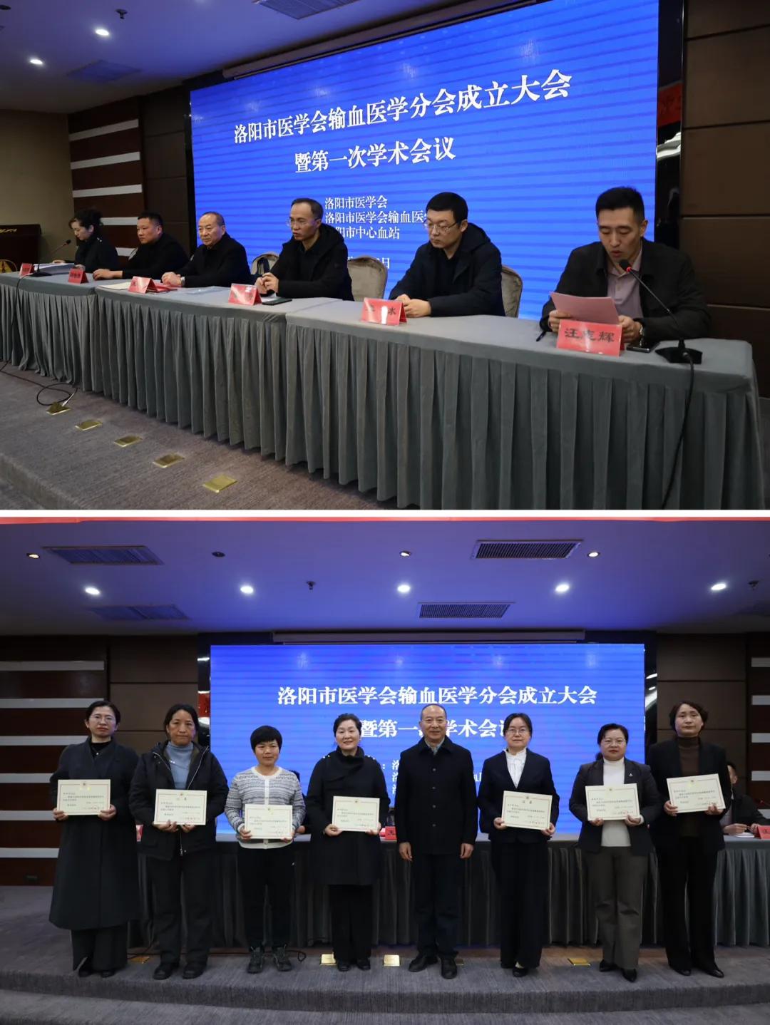 洛阳市医学会汪志辉主任宣读《洛阳市医学会关于首届输血医学分会组成人员的通知》。洛阳市医学会王建乐会长为主委、副主委颁发荣誉证书,对致力于洛阳市输血医学事业的同道表示衷心感谢。