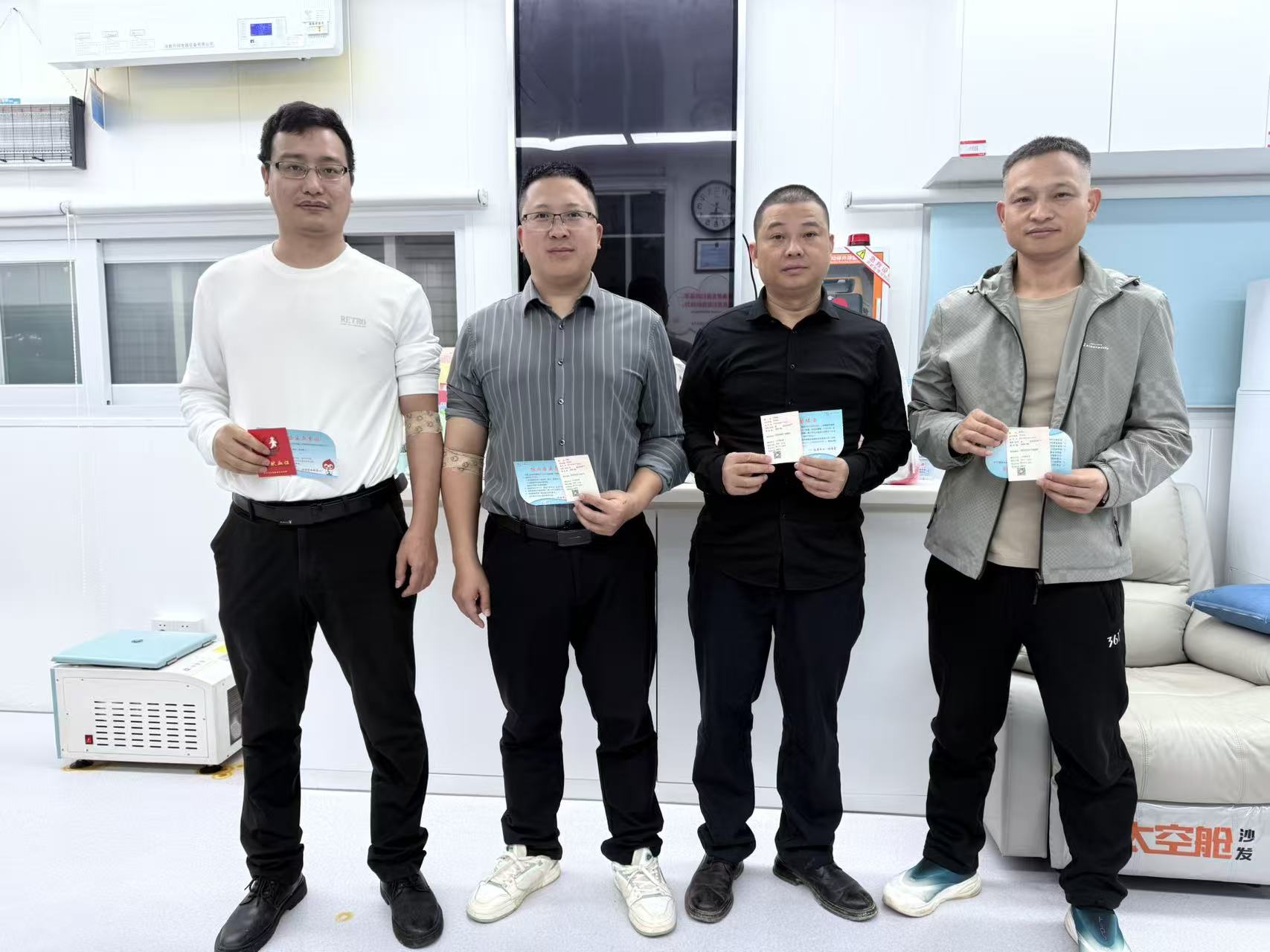 此次热血行动中,资深献血者王锦波格外令人敬佩。此前他已在外地多次参与无偿献血,累计达十余次,此次是他在南宁的“首次”捐献。在他的积极带动下,三位同事也勇敢地完成了各自的首次献血体验,爱心队伍由此壮大。