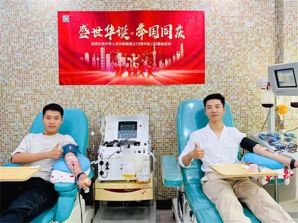 唐先生(图左)和白先生(图右)都是来自云南的大一新生,分别就读于同济大学和复旦大学。献血者唐先生说:“国庆节之际,我们想为社会和祖国贡献自己的一份绵薄之力,我们怀着兴奋的心情来到了虹口区的献血点,无偿献血不仅是救治人的重要方式,更能彰显一个人的社会责任感,我们想通过自己的行动为社会传递温暖。”