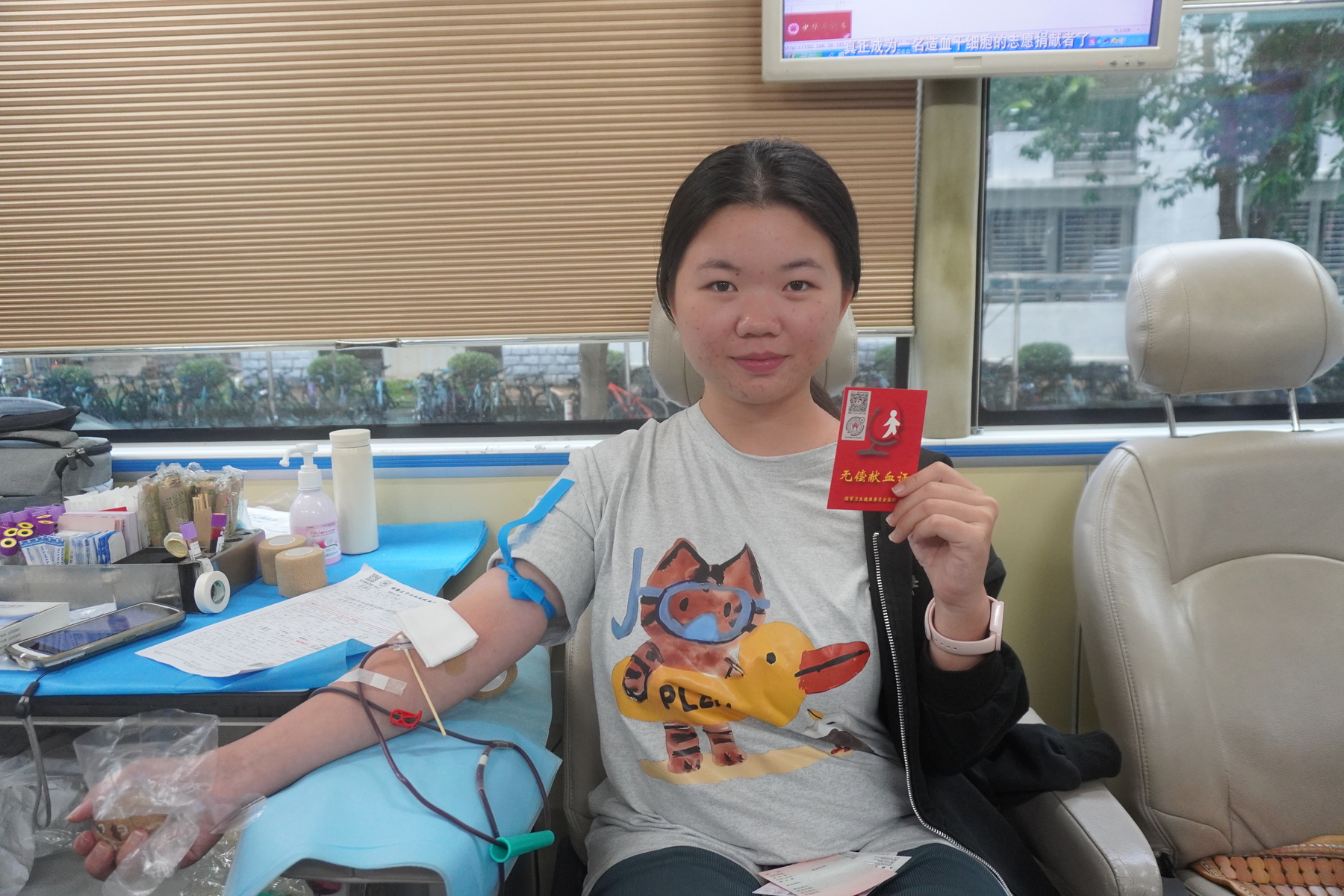 献血车内,针头刺入血管的瞬间,有些同学会下意识攥紧拳头,眼神却透着坚定,当看到自己的热血缓缓流入血袋,脸上又会露出释然的笑容。“刚开始有点紧张,不过想到这袋血可能会救一个人的命,就觉得一点都不疼了。”大一学生徐艳玲献完血后,小心翼翼地把献血证放进书包,“这是我献出的第一份‘生命礼物’,以后只要符合条件,我还会来参加献血。”