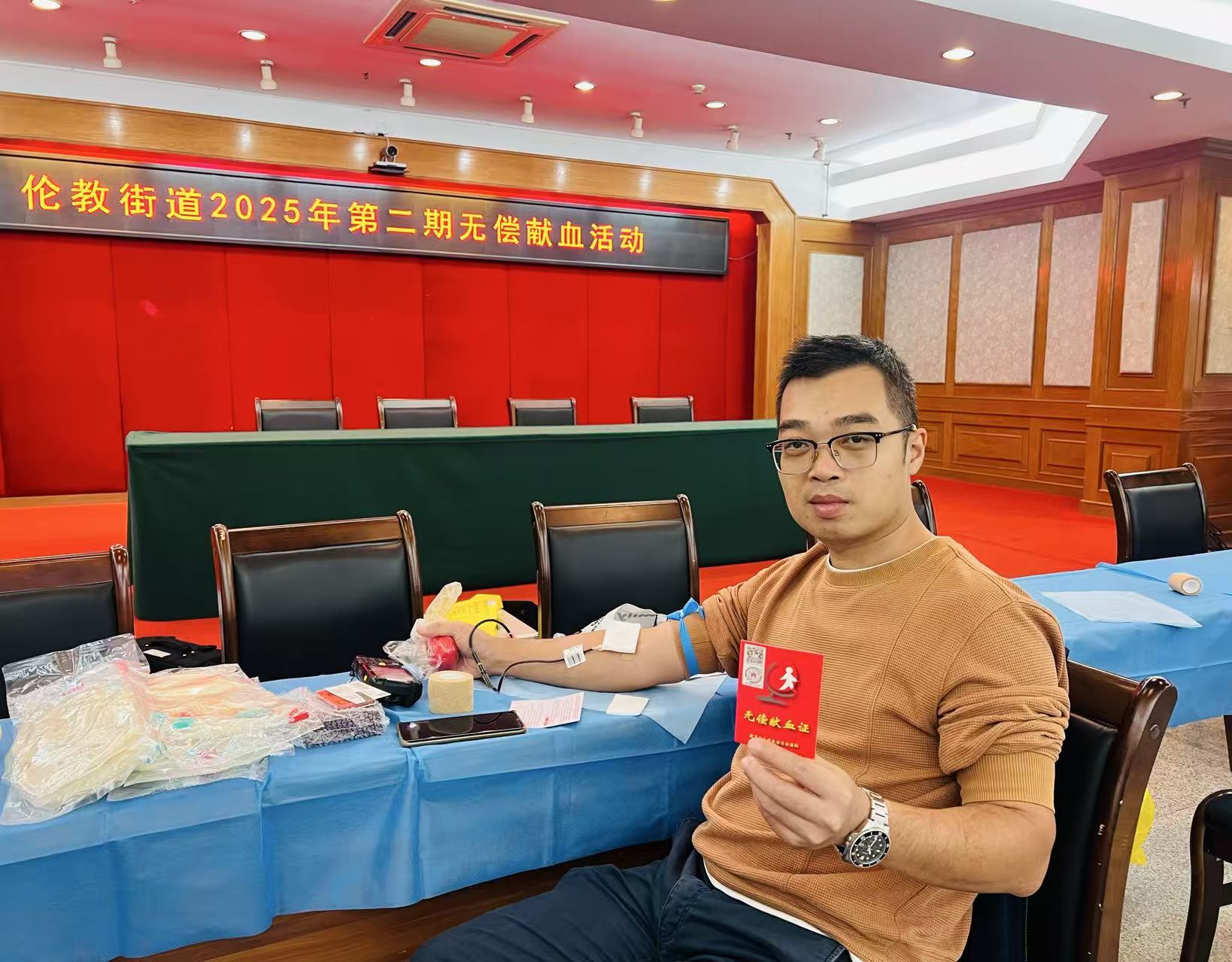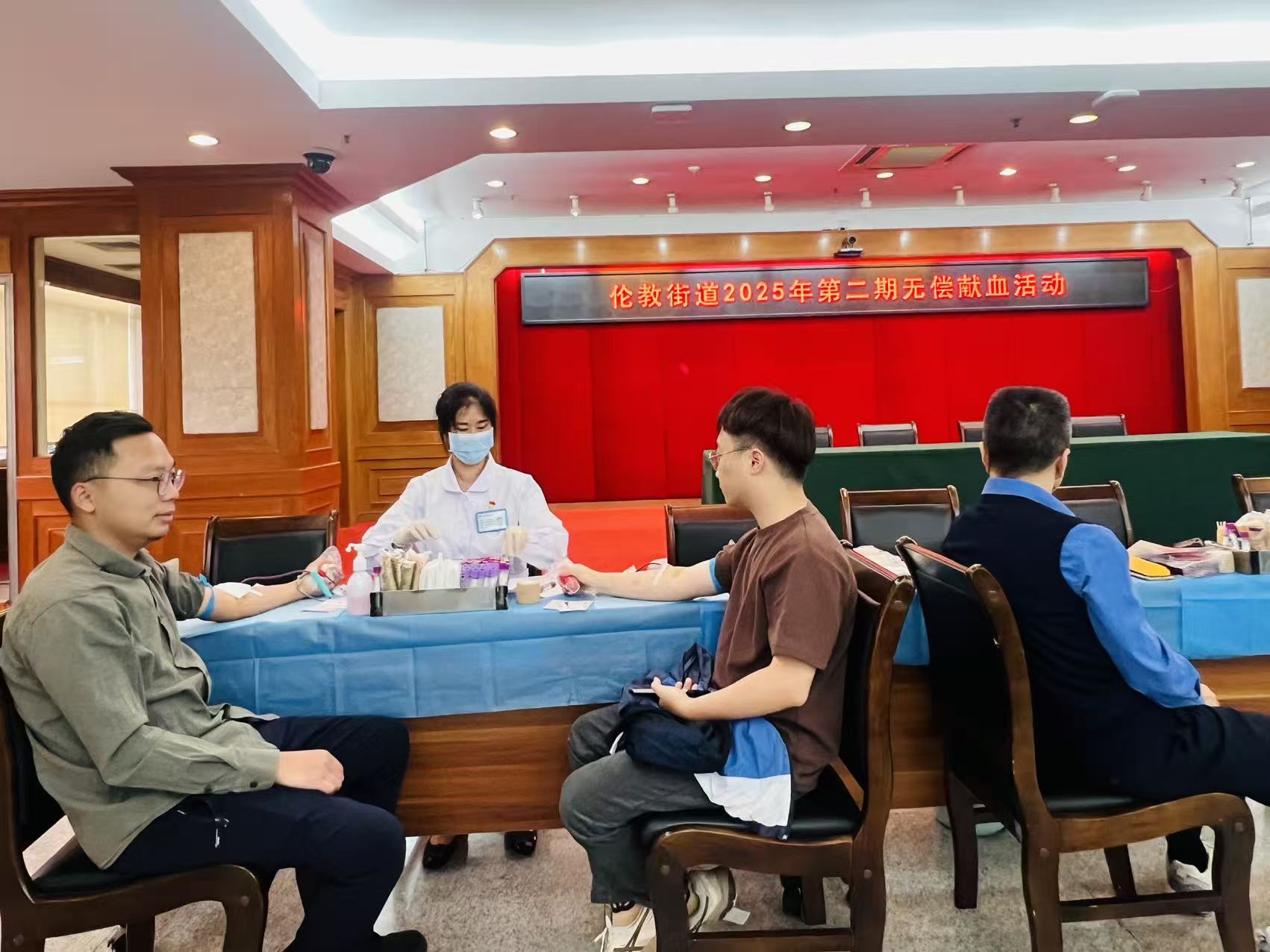 在伦教街道办事处的献血现场,献血活动有序开展。机关工作人员们提前协调工作安排,利用空余时间赶来参与。大家纷纷表示,无偿献血是举手之劳的善举,能以实际行动为社会公益出一份力,既光荣又有意义。现场,顺德区中心血站的工作人员细致核对信息,耐心讲解注意事项,志愿者们全程提供贴心服务,让整个献血过程温暖而有序。